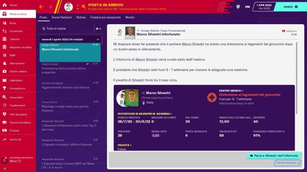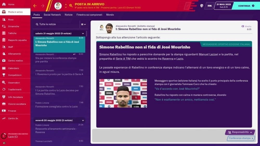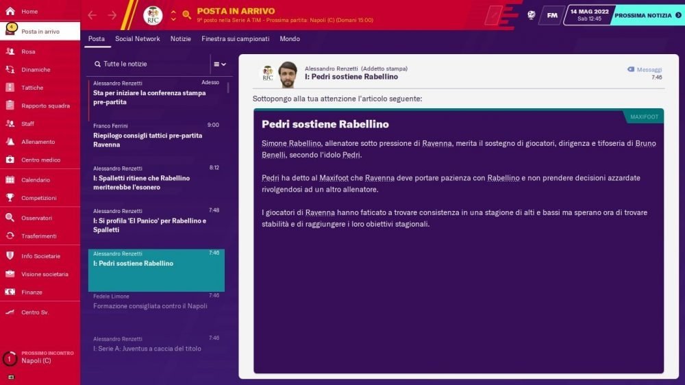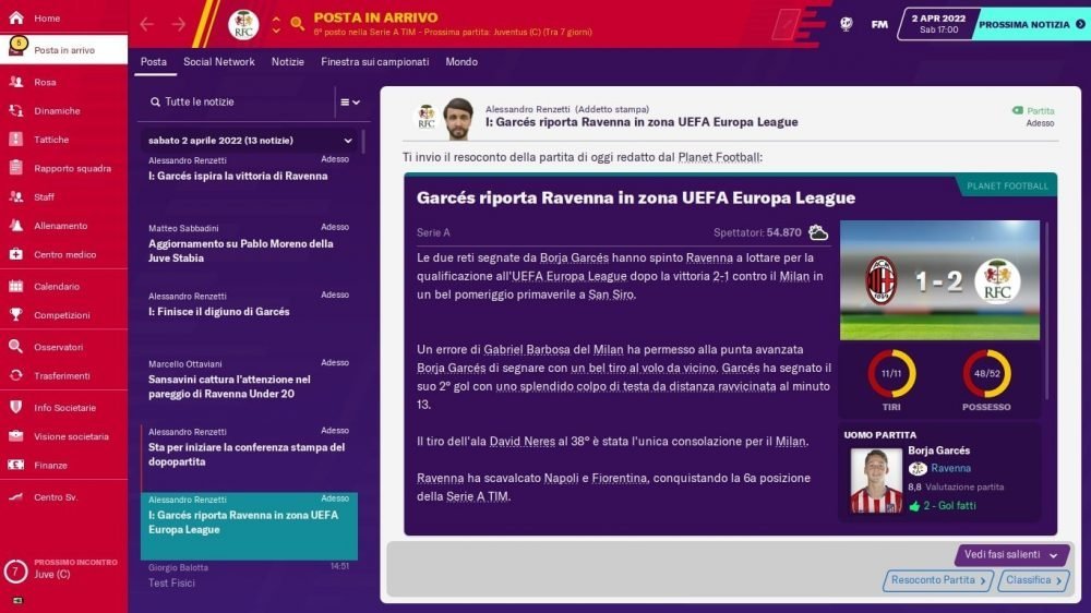 Sperando che l’avventura del Ravenna 2021-2022 vi sia piaciuta, vi invitiamo a condividere le vostre avventure in Football Manager 2020 inviandoci i fatti salienti delle vostri stagioni.